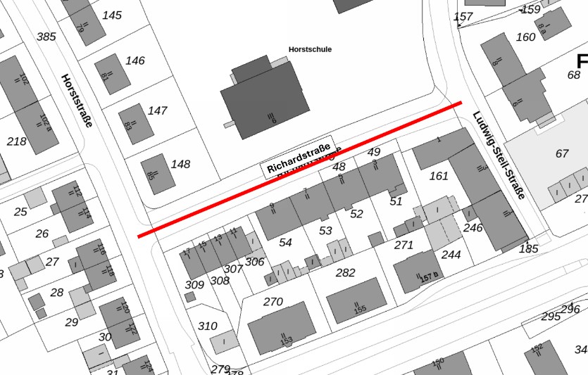 Ab 30. September 2025 erneuert die Stadtentwässerung Herne den Kanal in der Richardstraße (ca. 130 m zwischen Ludwig-Steil-Straße und Horststraße). Die Arbeiten dauern etwa drei Monate und führen zu abschnittsweisen Vollsperrungen mit Umleitungen. Anliegerverkehr bleibt möglich. Nach Abschluss wird die Asphaltdecke der Straße erneuert.