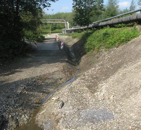 Auf dem ehemaligen Flottmanngelände verläuft der Wasserlauf in einem offenen Gewässerverlauf, unterquert die Straße des Bohrhammers und verläuft parallel zur Straße Am Schrebergarten im Randbereich des Schrebergartens. Für das Unterqueren der Bochumer Straße werden ca. 62m DN1000 Betonrohre verlegt. Im Anschluss an die Unterquerung Bochumer Straße verläuft der Zulaufgraben wieder offen in der ehemaligen Gleistrasse des Rangierbahnhofs Constantin. Aufgrund des Platzangebotes wird der Reinwasserlauf mäandrierend hergestellt, so dass hier eine naturnahe Gewässerentwicklung stattfinden kann.