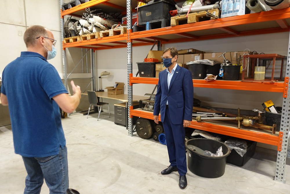 29 gewerblichen Mitarbeiterinnen und Mitarbeiter sind vom Trimbuschhof zum Grenzweg gekommen und haben sich gut hier eingerichtet. Sie finden am Grenzweg auf 1.100 Quadratmetern Räumlichkeiten, die genau auf ihre Bedürfnisse zugeschnitten sind: Schwarz- und Weißkauen sowie Duschen und Büros für die Mitarbeitenden aus dem Kanalbau, einen Technikbereich mit Werkstatt, Lager, EDV-Räumen und eine beheizte Fahrzeughalle, damit die Spezialfahrzeuge der SEH bei jeder Witterung einsatzbereit sind.